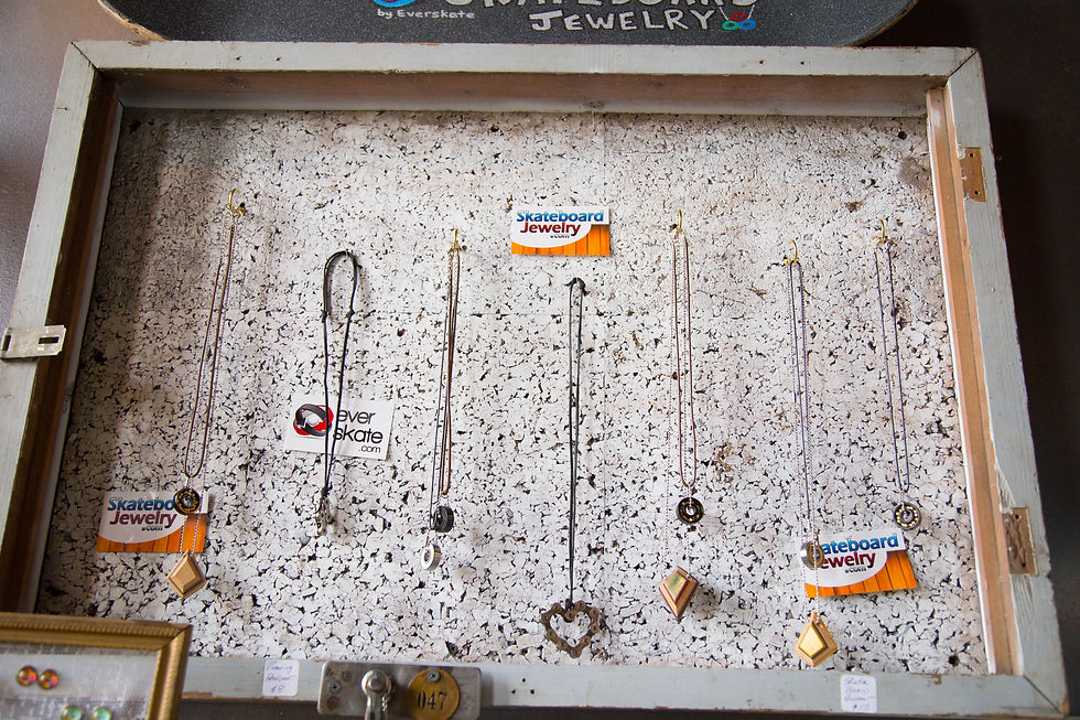 Here is a selection of the skateboard jewelry that is offered at Brown Dog Market. There are 2 different companites www.everskate.com and www.skateboardjewelry.com .